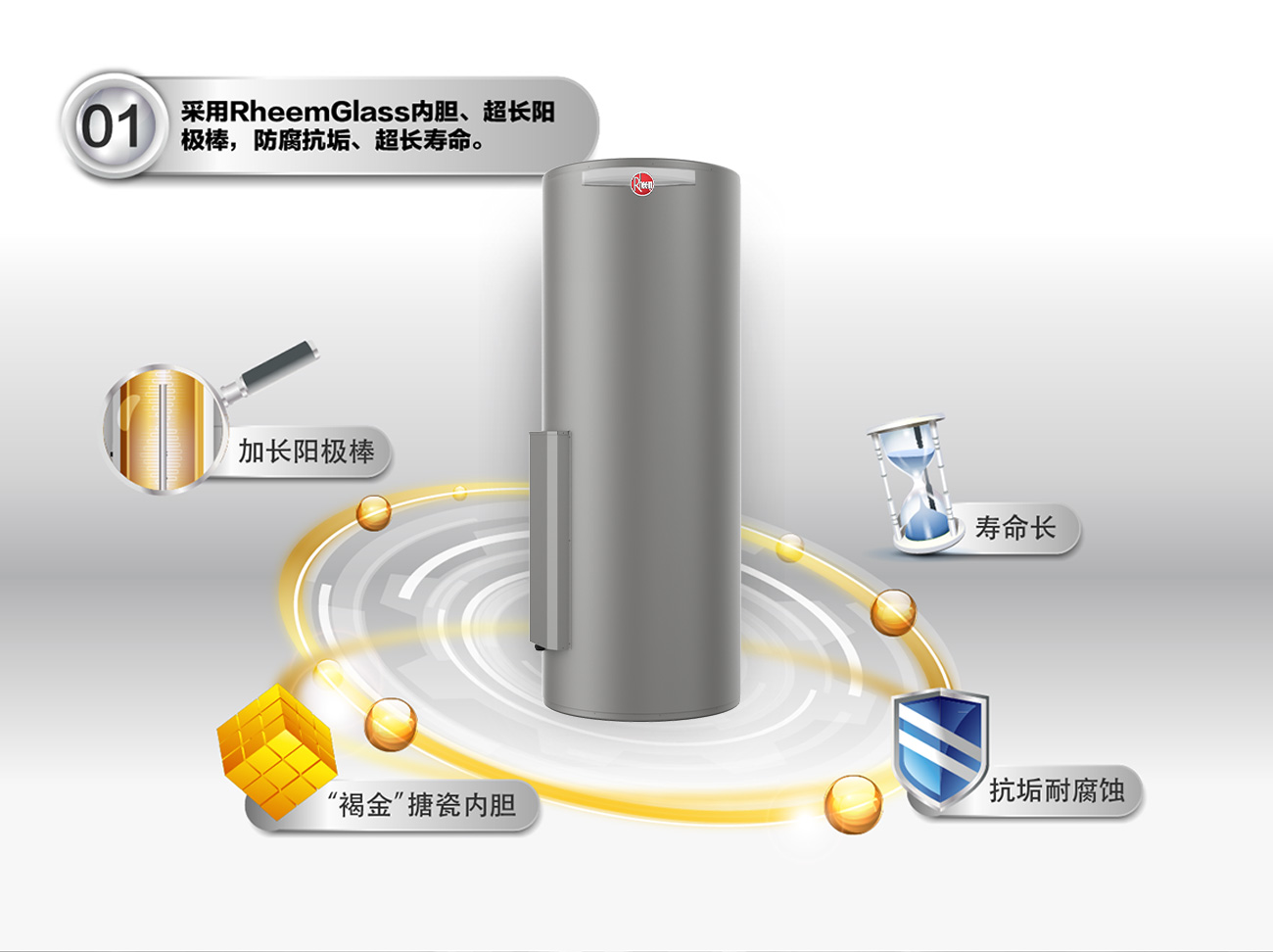 ·RHEEMGLAS内胆,防腐抗垢,寿命长