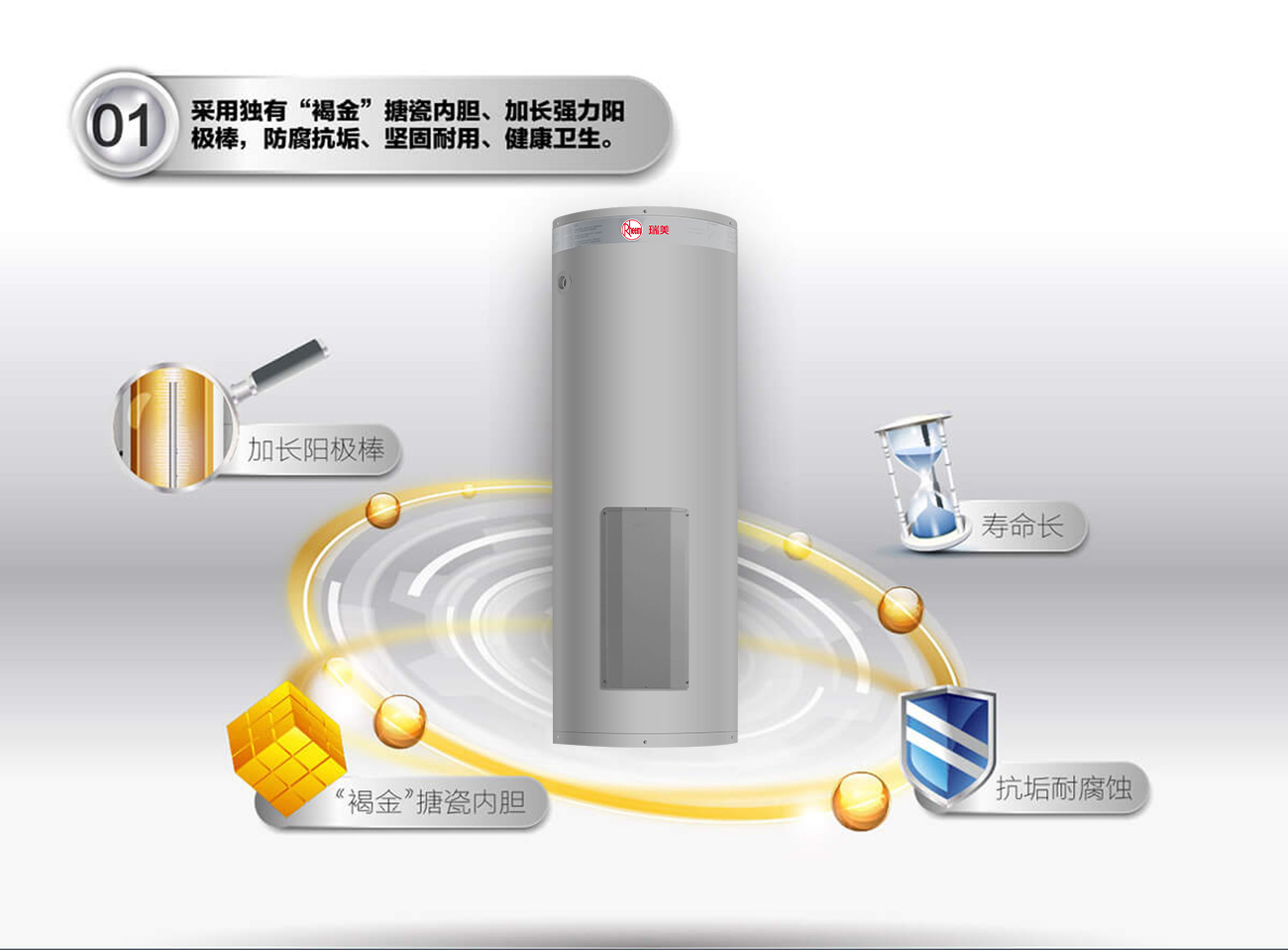 ·RHEEMGLAS内胆,防腐抗垢,寿命长
