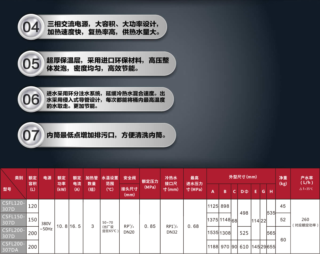 ·大容积大功率,复热率高,供热水量大