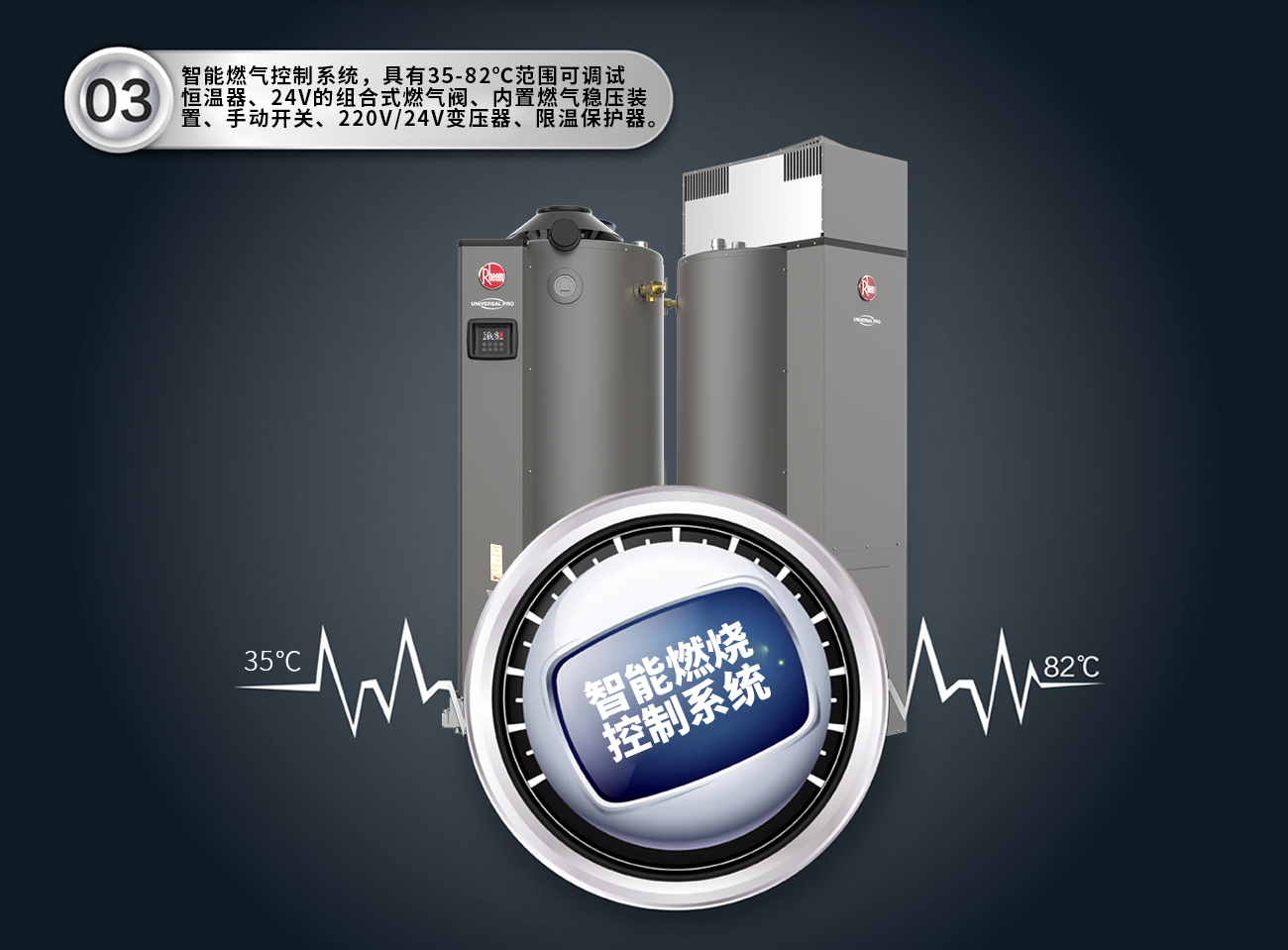 ·特设烟道挡板,使待机时烟道热损失减少60%
